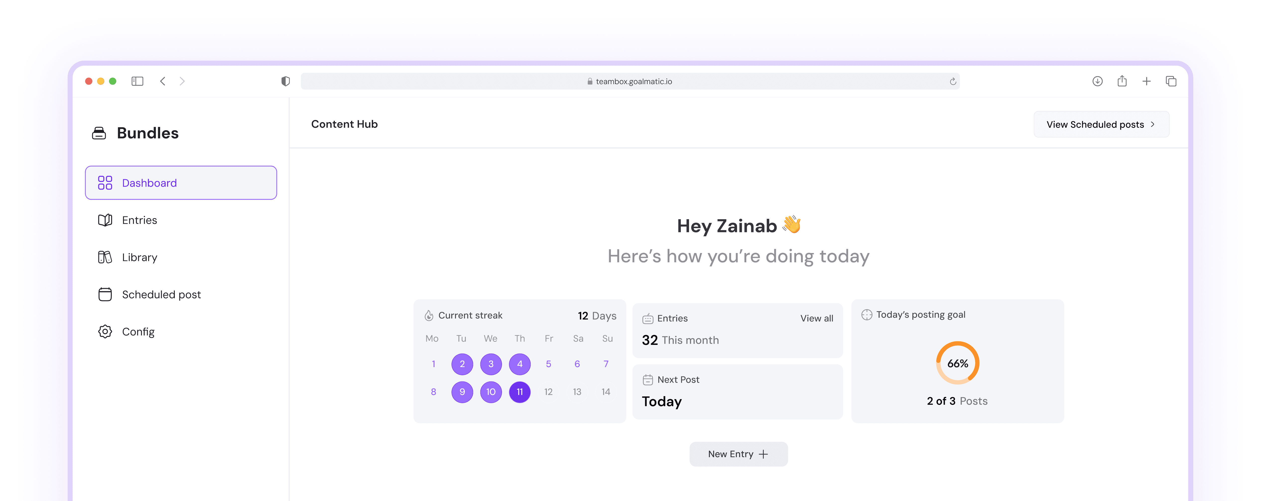 Content hub allows you to create and schedule posts ahead of time so you don’t have to worry about staying consistent or missing posting goals.